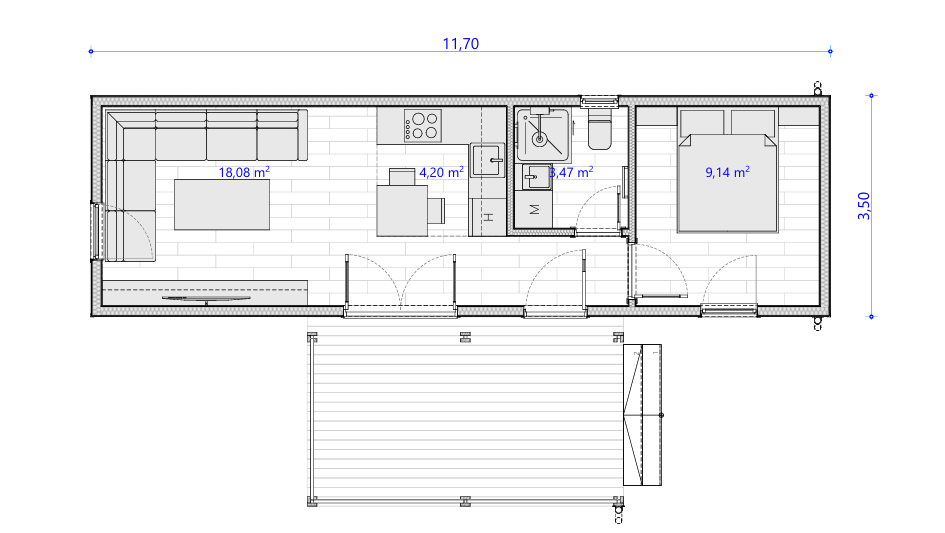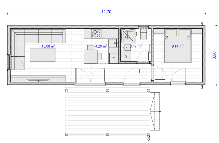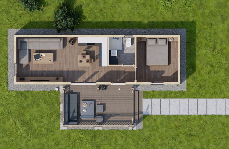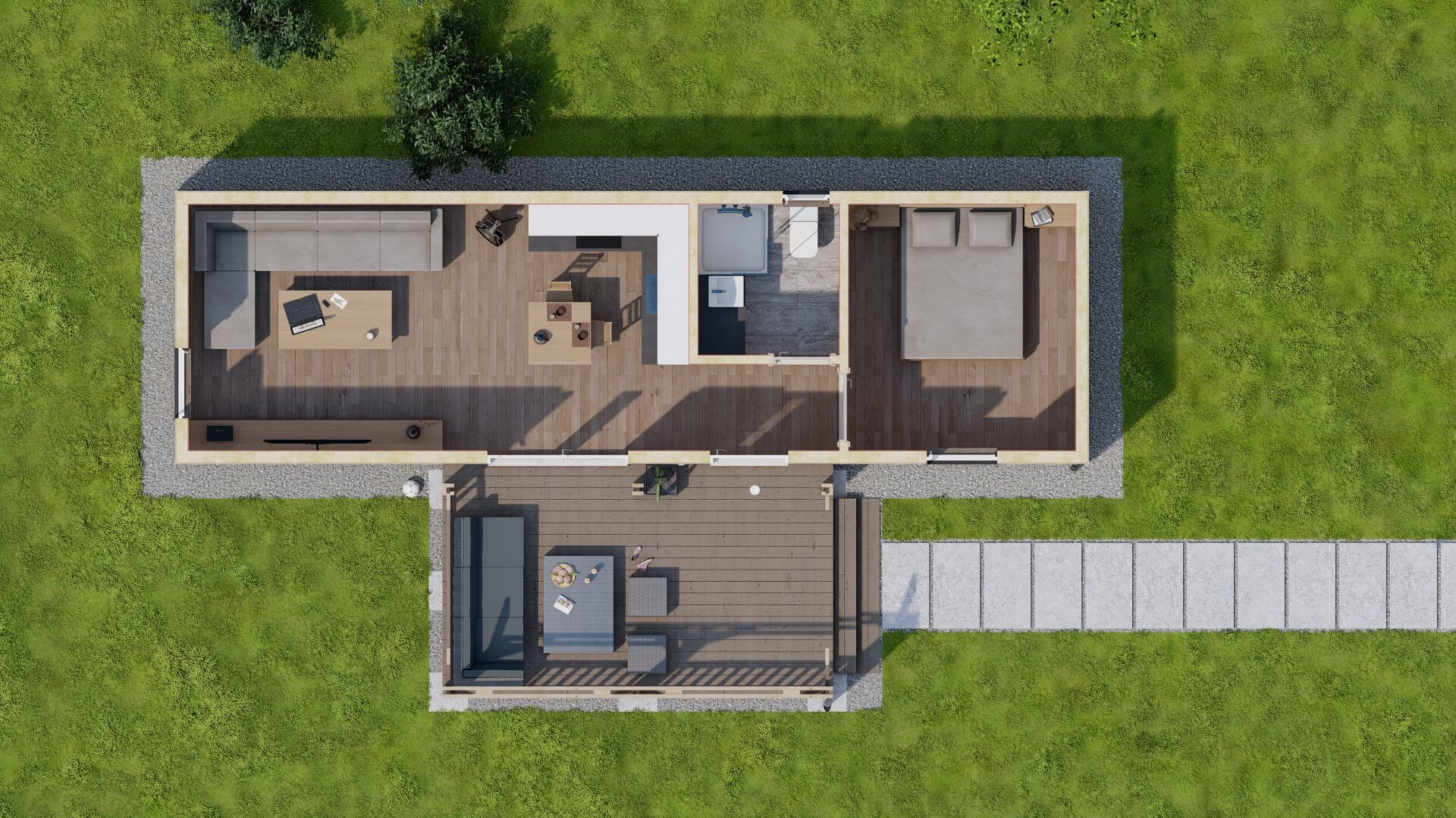 Ez a modell nettó 35 m² alapterületű, így ideális választás hétvégi háznak, zártkerti ingatlanra, vagy olyan telekre, ahol lakóingatlan építési engedélye nem lehetséges. És ami igazán vonzó: nettó 17 900 000 Ft + 27% ÁFA áron elérhető, kulcsrakész kivitelben.