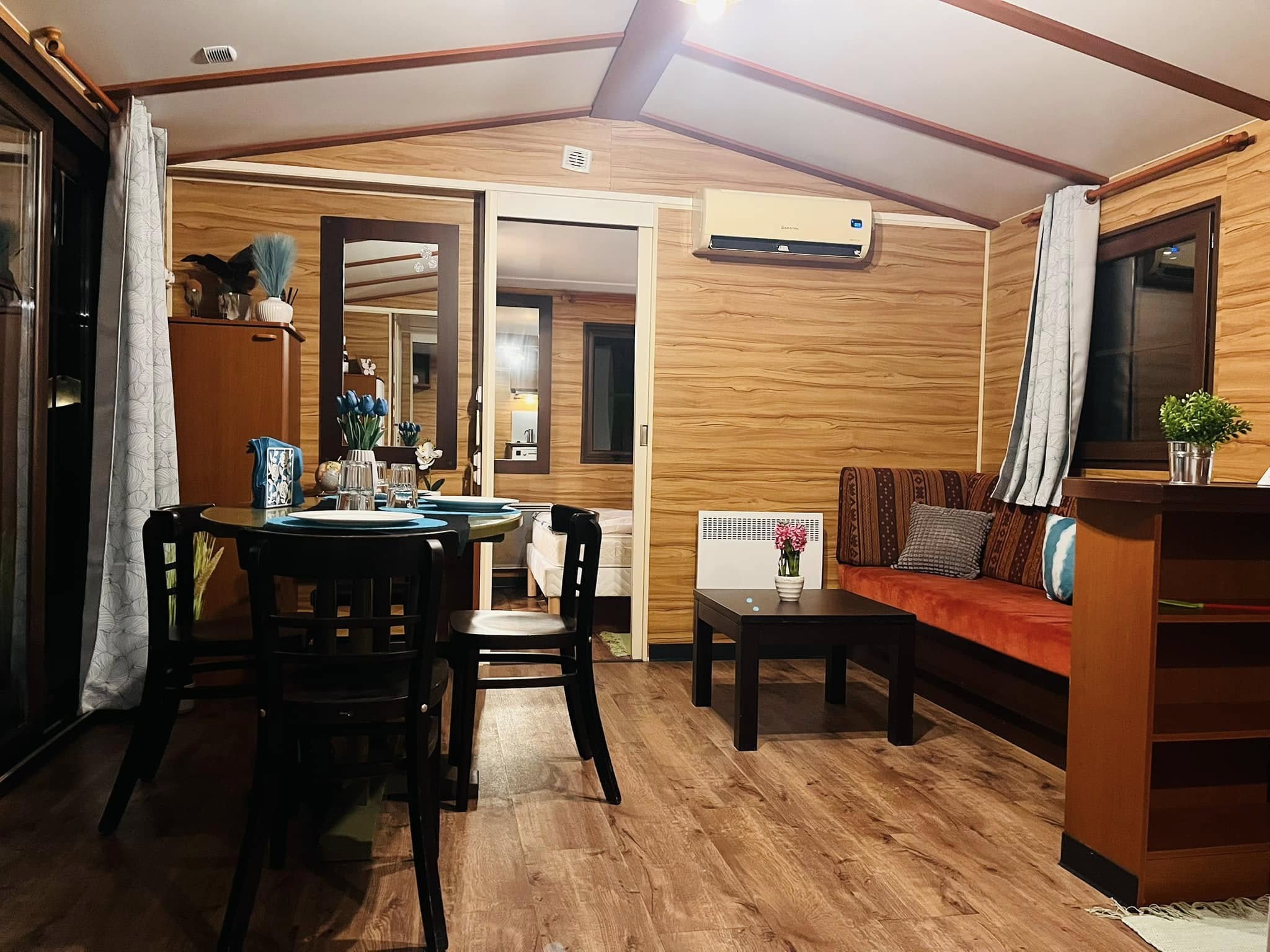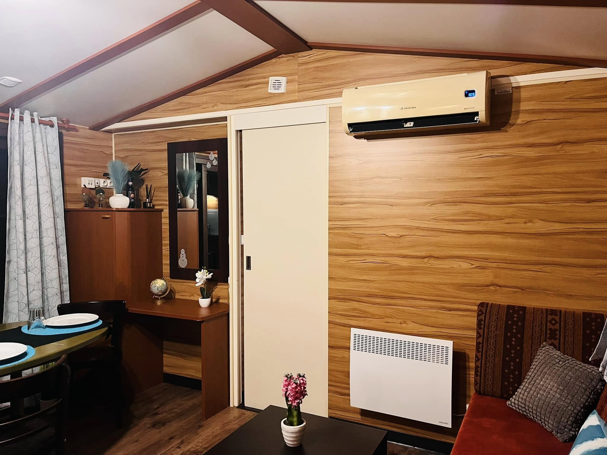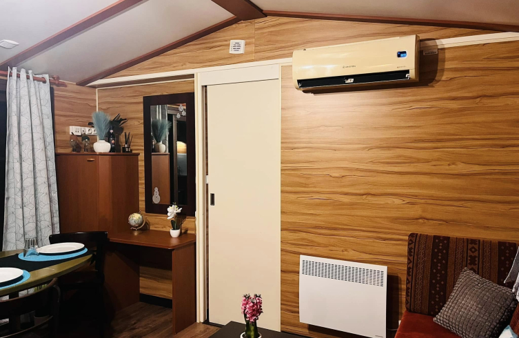 A felszereltség a modern élet minden igényét lefedi: teljesen elektromos rendszer működteti a főzőlapot, a mosogatógépet, a hűtőt, a páraelszívót és a 200 literes bojlert. A hűtő–fűtő klíma, a helységenkénti fűtőpanelek és a belső légkeringető rendszer egész évben kényelmet biztosítanak. Mindezt alapbútorokkal és vadonatúj, becsomagolt függönycsomaggal adjuk át, hogy valóban azonnal beköltözhess.